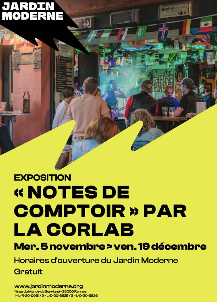 Issu d’une série de 20 épisodes lancée en janvier 2025 sur les radios de la CORLAB, “Notes de comptoir” devient une exposition photo et sonore au Jardin Moderne (Rennes) du 5 novembre au 19 décembre 2025. L’ouverture donnera lieu à un plateau radio Canal B/Radio BOA, suivi d’un vernissage et