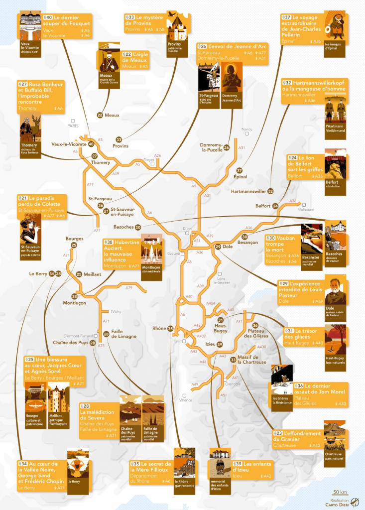 Deux saisons et 40 épisodes qui donnent vie aux légendes et aux figures emblématiques des territoires desservis par les autoroutes APRR et AREA sous la forme d’un divertissement qui veut enrichir l’expérience du voyage et favoriser l’attractivité des territoires.