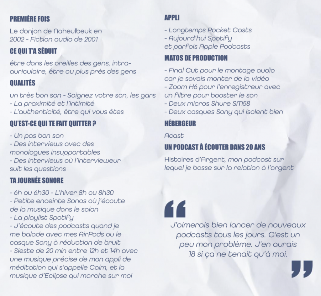 “Ne croyez pas les gens qui vous disent que vous allez gagner plein d’argent grâce à votre podcast du jour au lendemain. C’est faux. Il faut taffer dur et longtemps.”