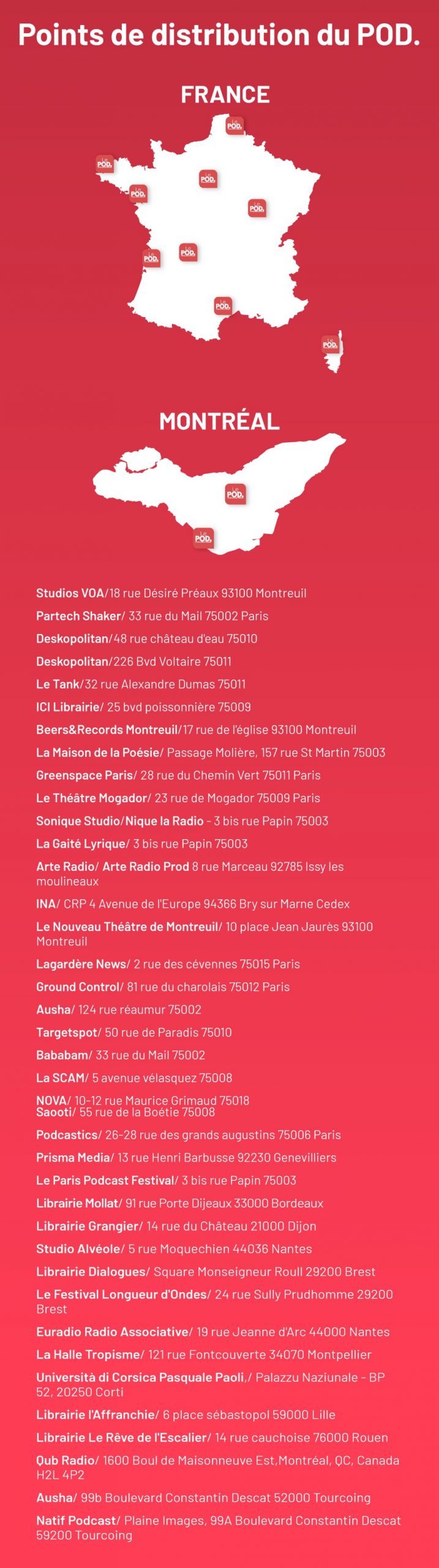 Le magazine LEPOD#006 est disponible dans les points de ventes ci-dessous (pour lesquels nous consacrerons des articles dans les jours à venir) ou ici, sur lepod.fr. Bonnes écoutes et bel été à tous.tes. !