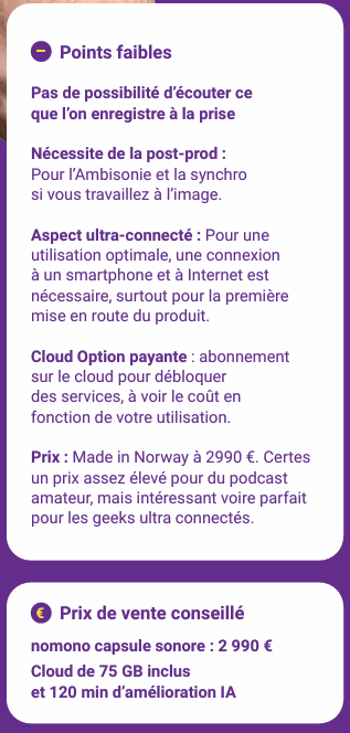 Le Nomono s’impose comme un objet de captation sonore qui sort de l’ordinaire. Il ravira bien des créateurs de contenu audio, alliant portabilité, qualité et innovation.