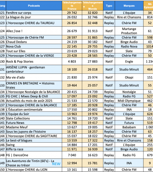 En août 2025, l’ACPM enregistre une hausse de 5% du volume total de téléchargements sur les 762 podcasts mesurés,...