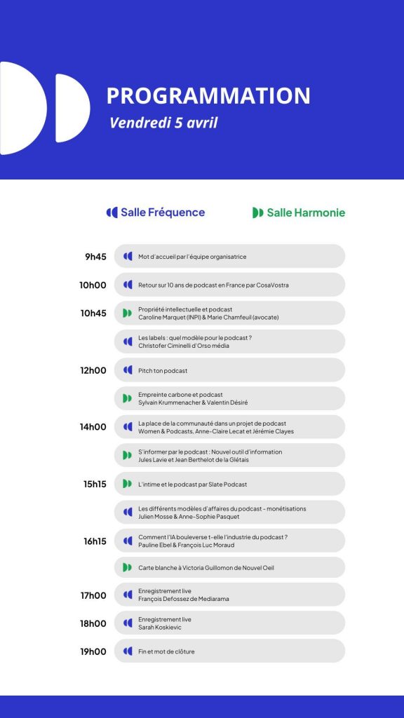 Retrouvez Podcast Magazine et sa librairie et test de matériel ainsi qu’un World Café que nous animerons pour répondre aux enjeux principaux du podcast aujourd’hui. Rendez-vous à 15h en Salle Harmonie. Vous pourrez participer à un tirage au sort pour gagner des enceintes et des récepteurs radio Bluetooth. Résultats annoncés à la fin du World Café pour les personnes présentes uniquement !